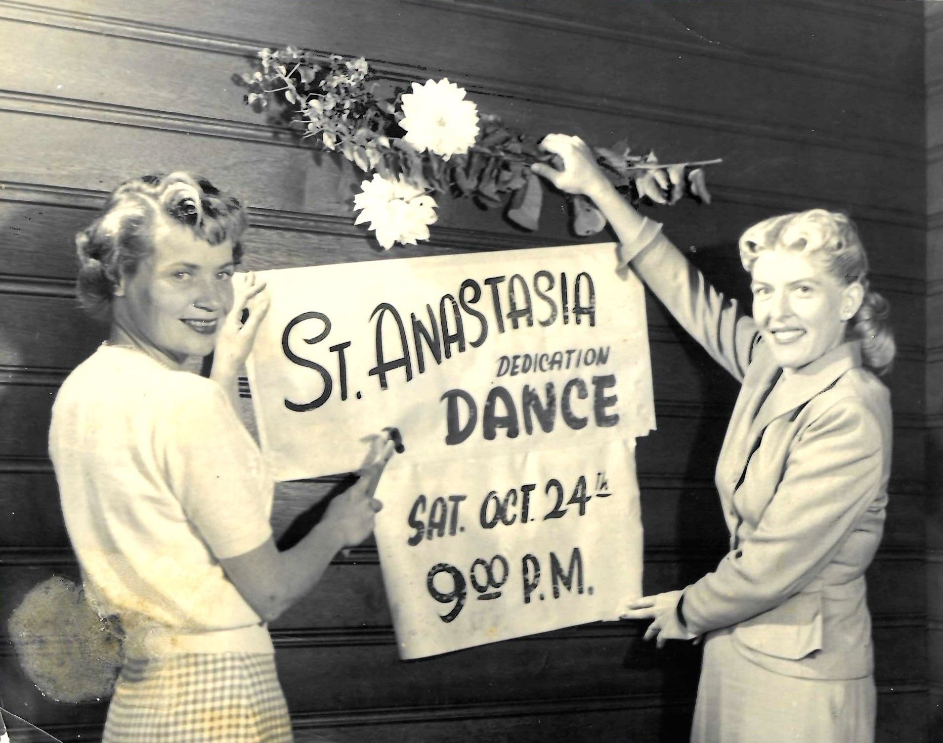 The parish continued to grow and in 1955 construction of an eight-room school building begun, Parishioners were back at work again building benches, painting, setting up playground equipment, constructing brick walls, installing sprinkler systems and assembling school desks. The outdoor shrine to our Blessed Mother was completed shortly after. St. Anastasia school opened September 19, 1955. The church, school and rectory were dedicated in 1956. In 1957 the school building was enlarged and in 1960 the convent was added. In 1964 St. Anastasia school reached its peak enrollment of 771 students with two classes per grade with students in 1st-8th grade.