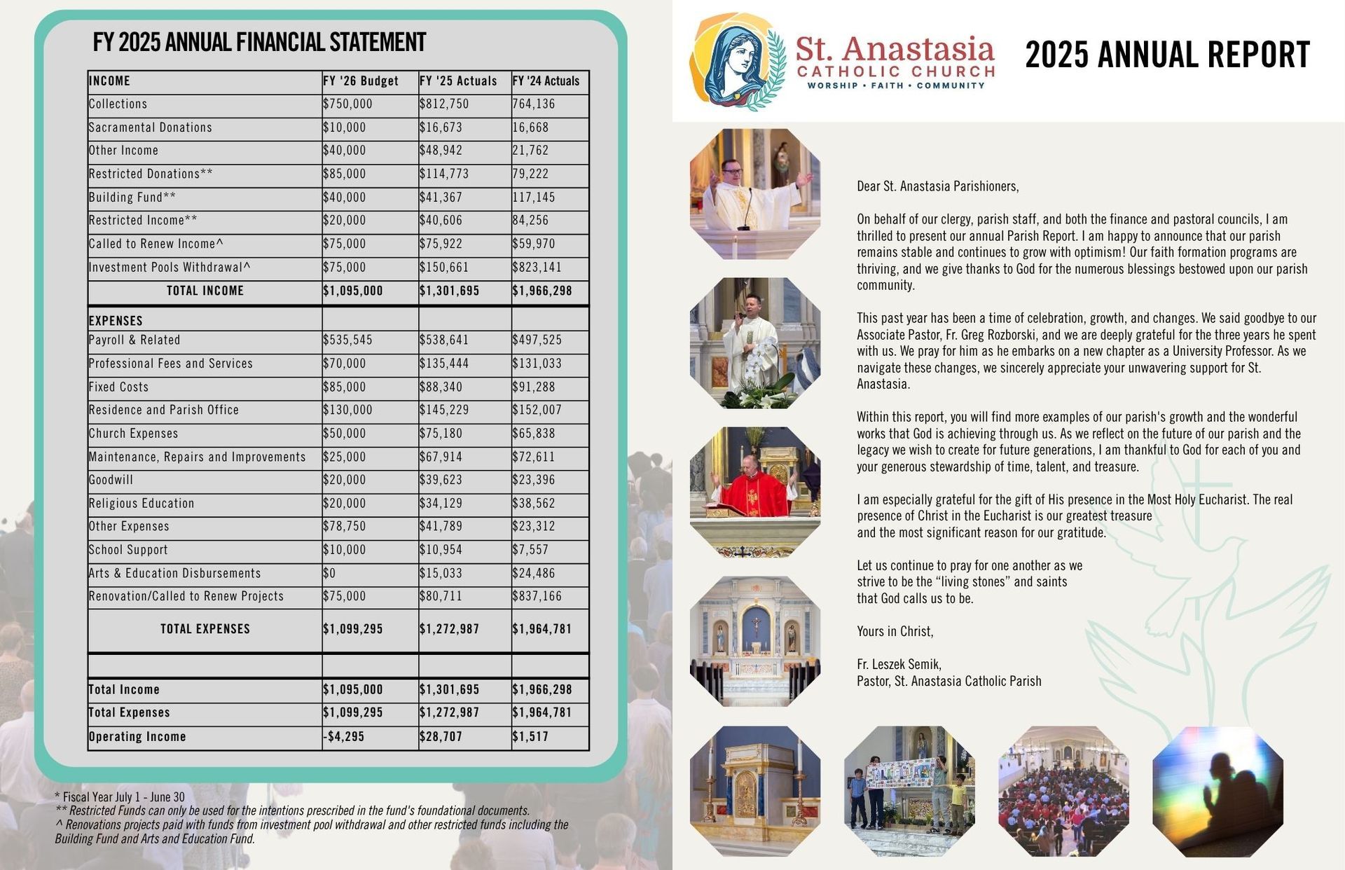 We are pleased to share the 2025 Report, highlighting a year of faith, growth, and community at St. Anastasia!